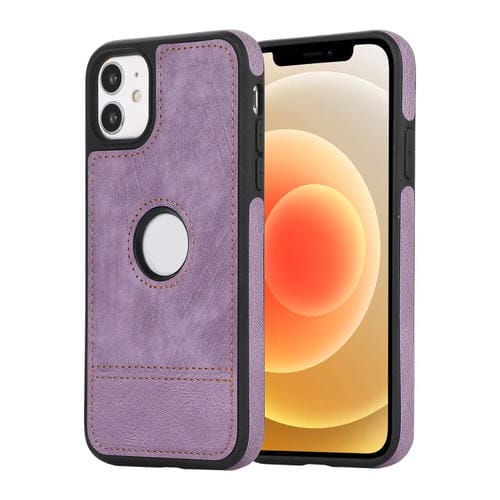 Caja de teléfono empalme costura de PU para iPhone 12/12 Pro con recorte hueco (Púrpura)