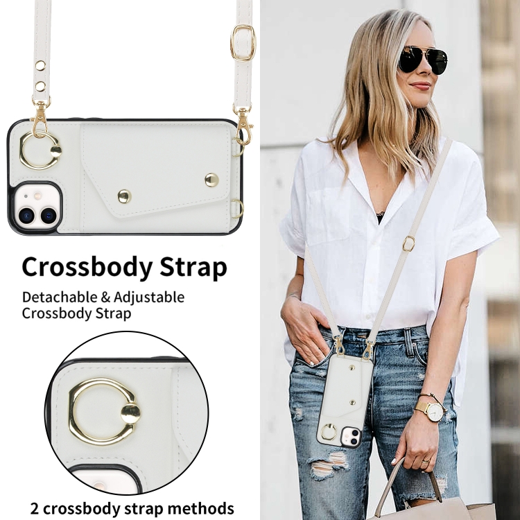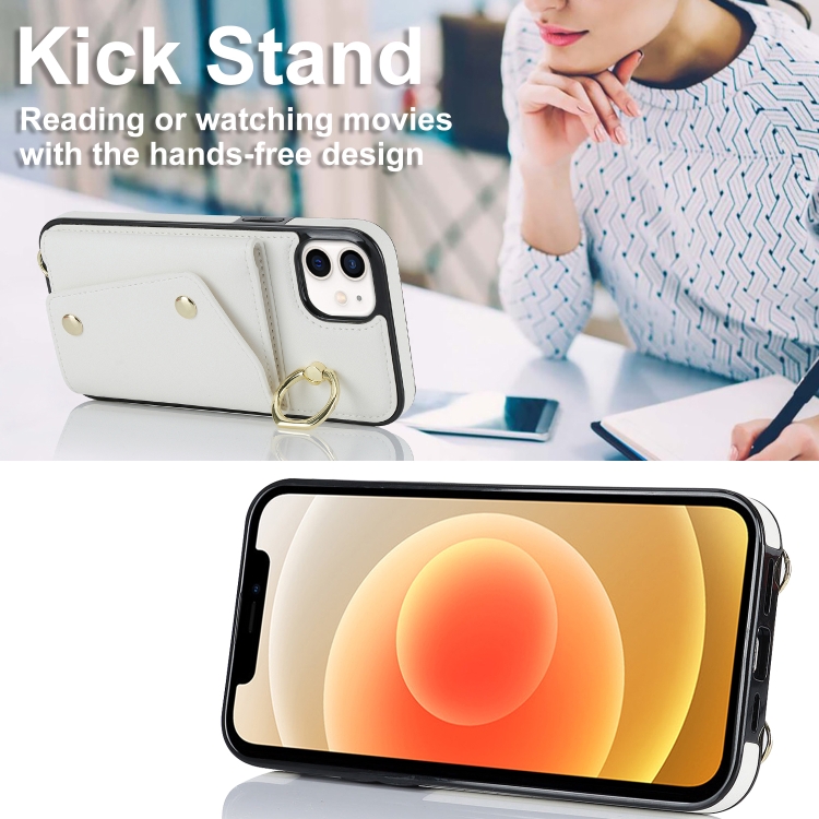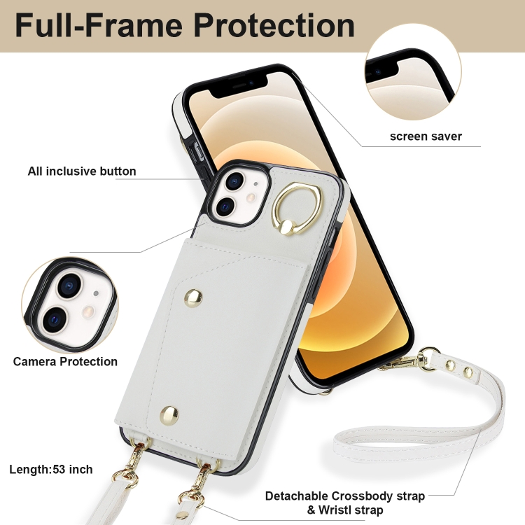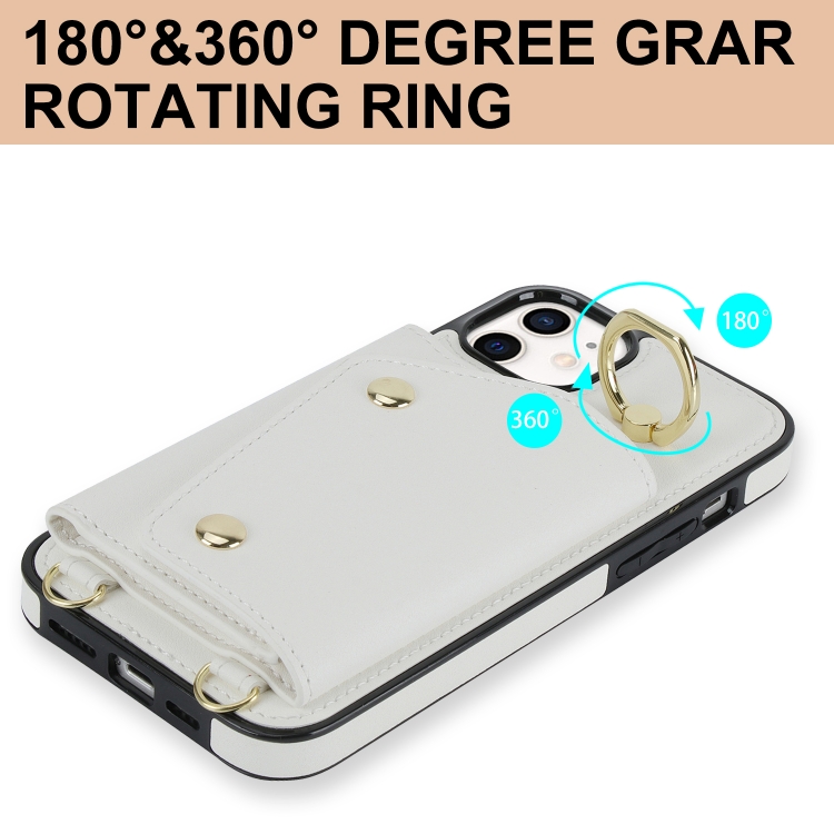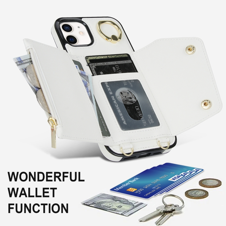 Estuche para teléfono iPhone 12/12 Pro con bolsa de tarjeta cremallera y doble cordón (Blanco)