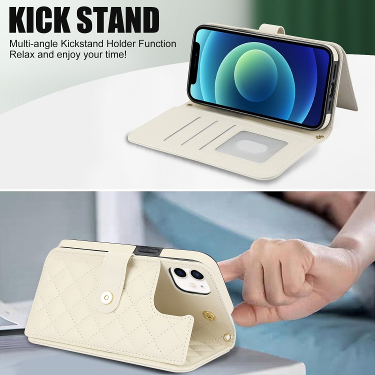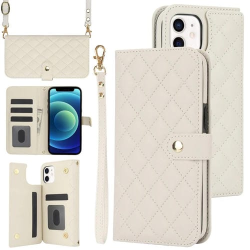 Estuche para Teléfono iPhone 12/12 Pro Cuero Rómbico Multifunción Cruzado (Blanco)