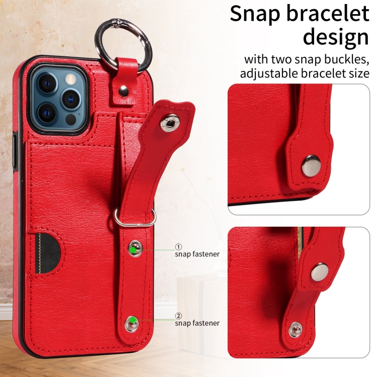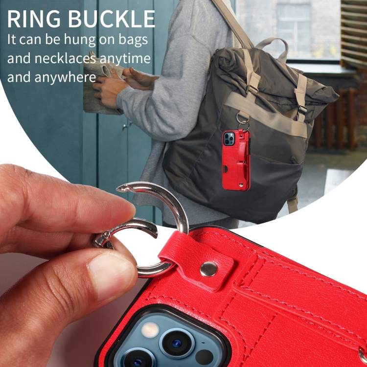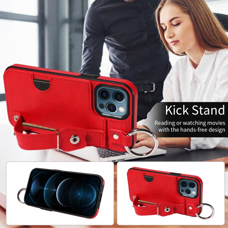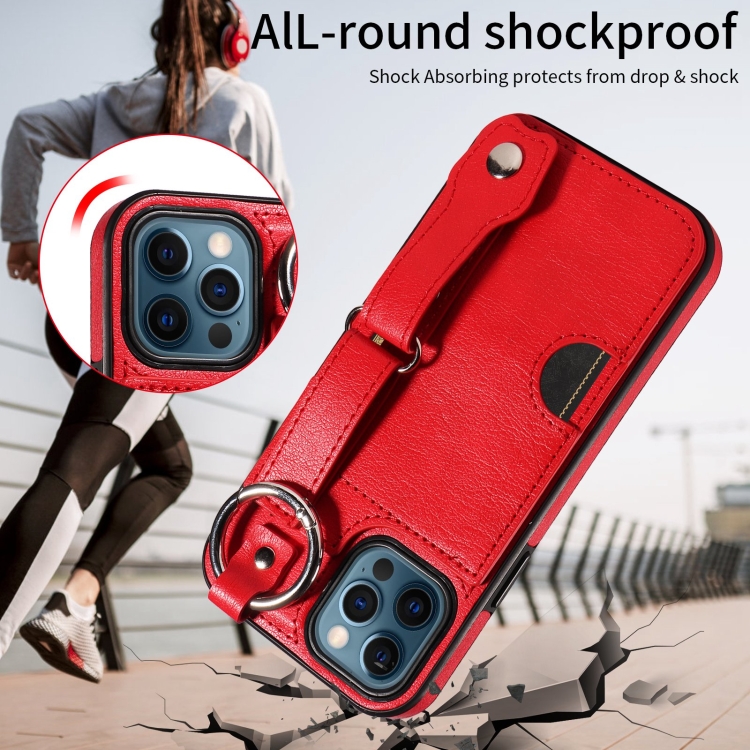 Funda para Teléfono iPhone 12/12 Pro con Anillo y Ranura para Tarjeta con Textura de Pantorrilla (Rojo)
