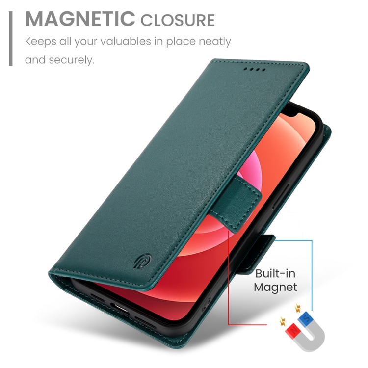 Funda para Teléfono iPhone 12/12 Pro Cuero Esmerilado Magnético con Hebilla Lateral (Verde Oscuro)