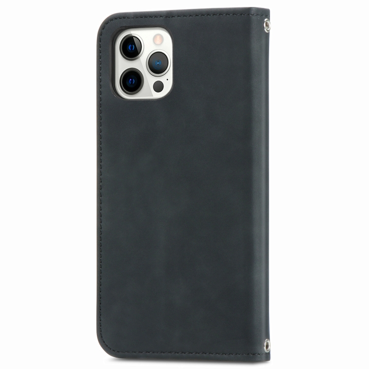 Funda de Cuero iPhone 12/12 Pro Retro Skin Feel Business con Tapa Magnética Soporte y Ranuras para Tarjetas (Negro)