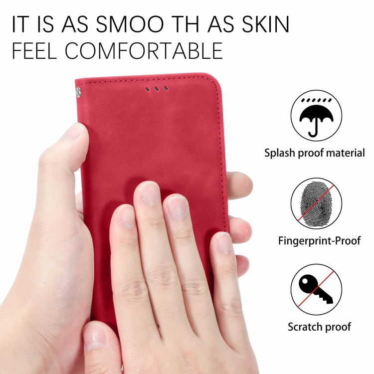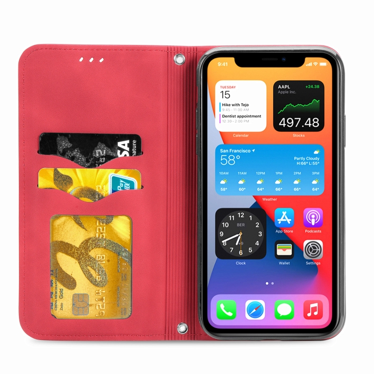 Funda de Cuero iPhone 12/12 Pro Retro Skin Feel Business Tapa Horizontal Magnética Soporte Ranuras Tarjetas Billetera Marco Fotos (Rojo)