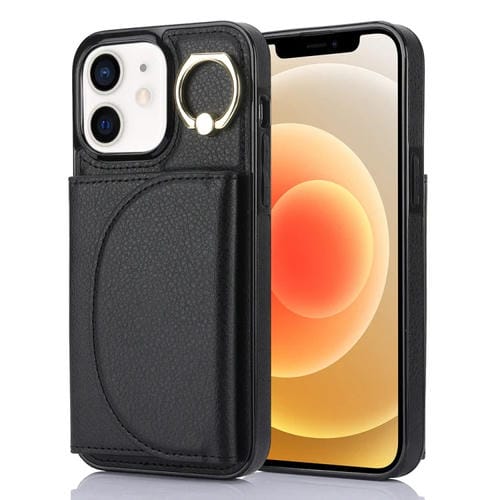 Funda para Teléfono Ym006 para iPhone 12/12 Pro con Soporte para Anillo y Tarjeta (Negro)