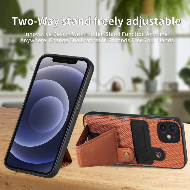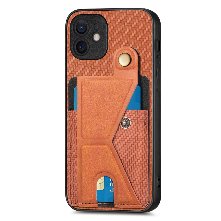 Funda para teléfono iPhone 12 Carbon Fiber Wallet Flip Card con Soporte en Forma de K (Marrón)