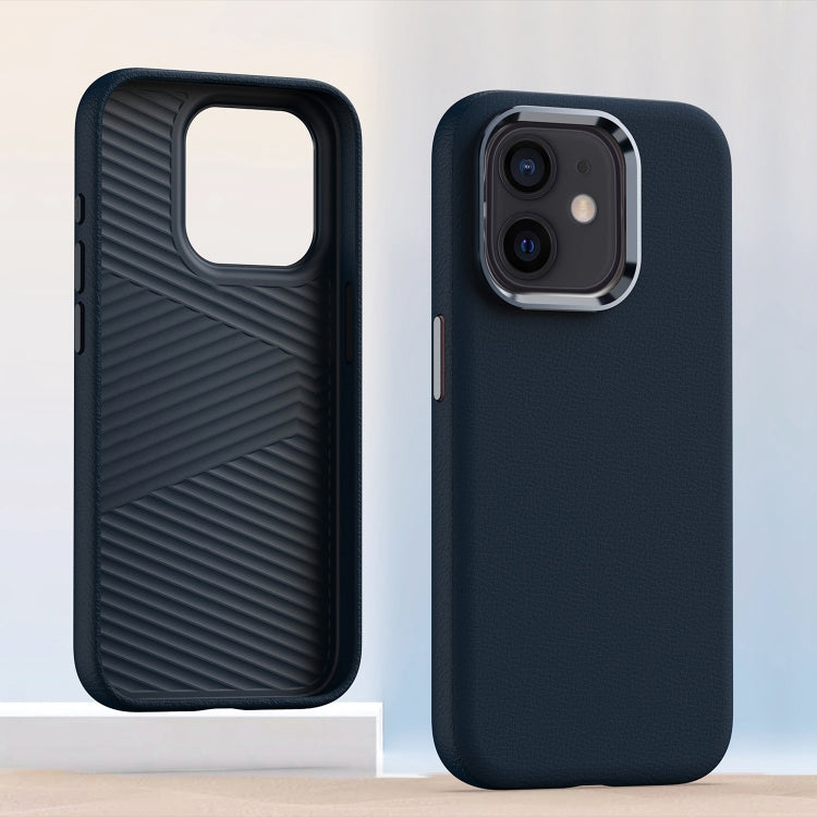 For iPhone 12 Full Coverage Shockproof Leather Phone Case with Metal Lens Frame (Blue)