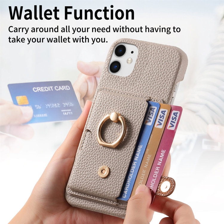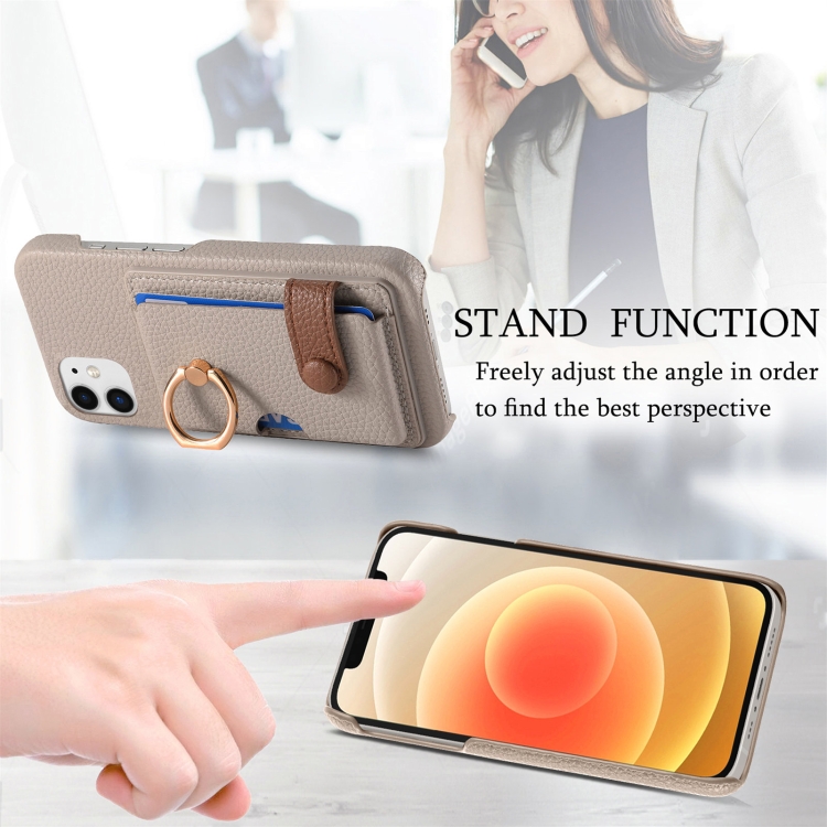 Funda para Teléfono iPhone 12 Parte Posterior Tarjeta Anillo Borde Aceite Cuero Litchi (Caqui)