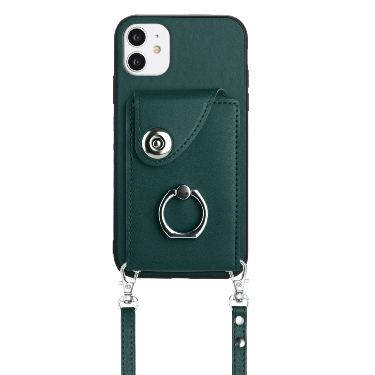 Funda para Teléfono iPhone 12 con Soporte para Anillo y Bolsa para Tarjeta de Órgano con Cordón Largo (Verde)