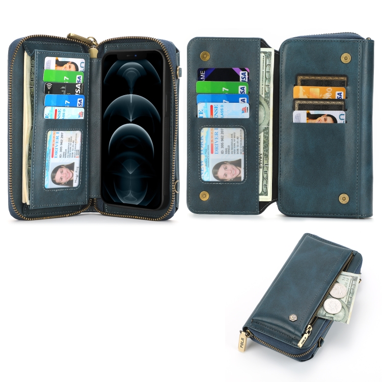 Funda para Teléfono iPhone 12 Cuero con Billetera y Cremallera Multifuncional Cruzada (Verde)