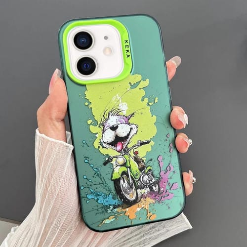For iPhone 12 Phone Case IMD Animal Graffiti TPU+PC Double-sided (Motorcycle Dog)