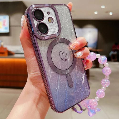 Funda para Teléfono iPhone 12 Loves Leaves Pulseras con Brillo Degradado Magsafe TPU Fibra de Carbono (Púrpura)