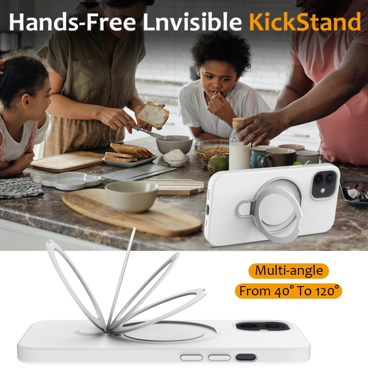 Funda para Teléfono iPhone 12 Magsafe Silicona Líquida Magnética con Soporte para Anillo (Blanco)