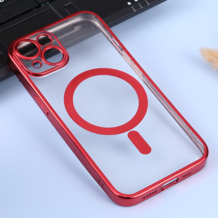 Funda para iPhone 12 Magsafe Galvanoplastia Straight TPU Phone Case (Rojo)