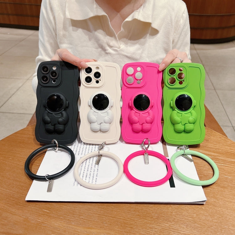 Funda para iPhone 12 Mini 3D Astronaut Holder Skin-Feel Silicone con Muñequera (Negro)