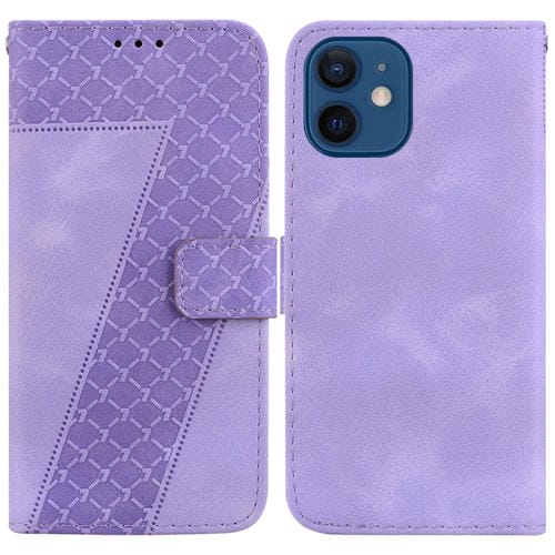 Funda para iPhone 12 Mini 7 en Forma de Caja de Cuero en Relieve (Púrpura)