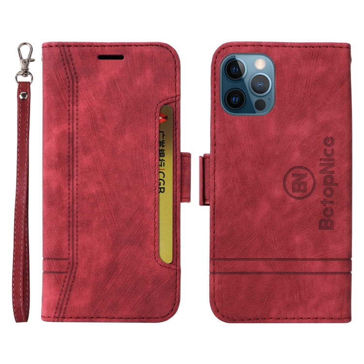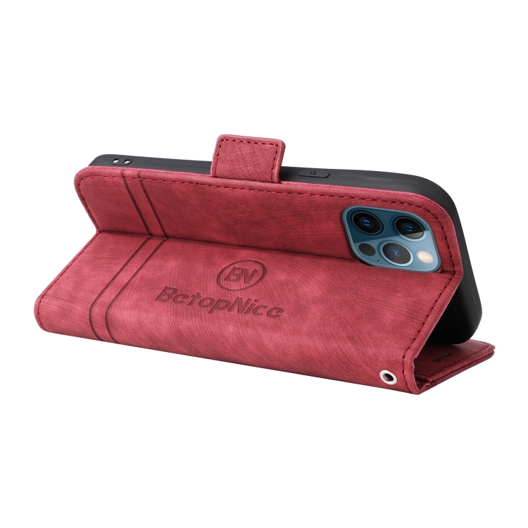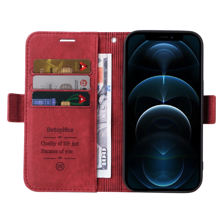 Estuche de Teléfono Betopnice para iPhone 12 Mini Cuero con Hebilla de Doble Cara (Rojo)