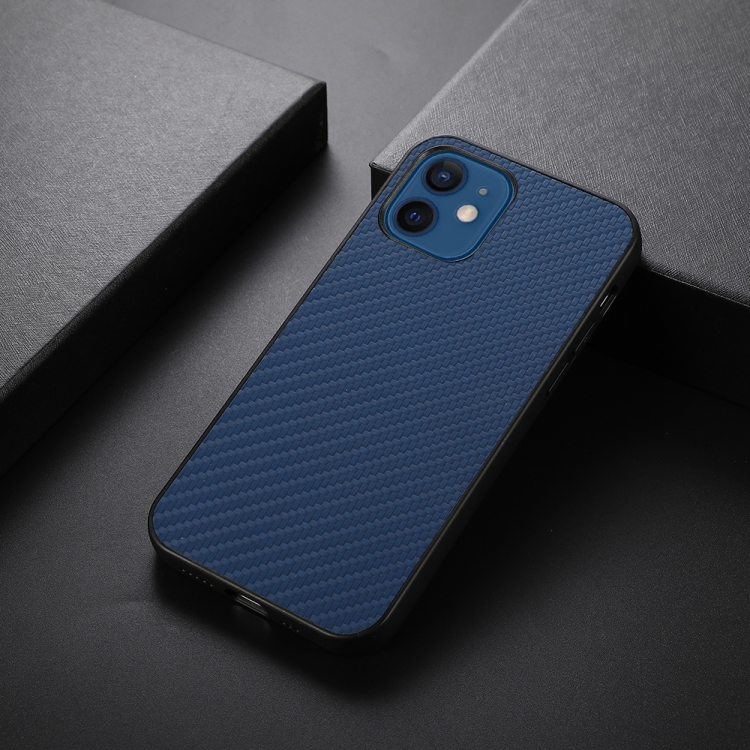 Funda protectora para iPhone 12 Mini Carbon Fiber Skin PU + PC + TPU a prueba de golpes (Azul)