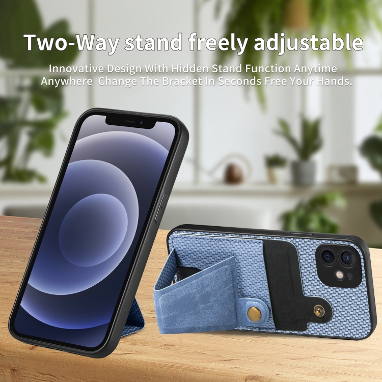 Funda Cartera para iPhone 12 Mini Fibra de Carbono Flip Card con Soporte en Forma de K (Azul)