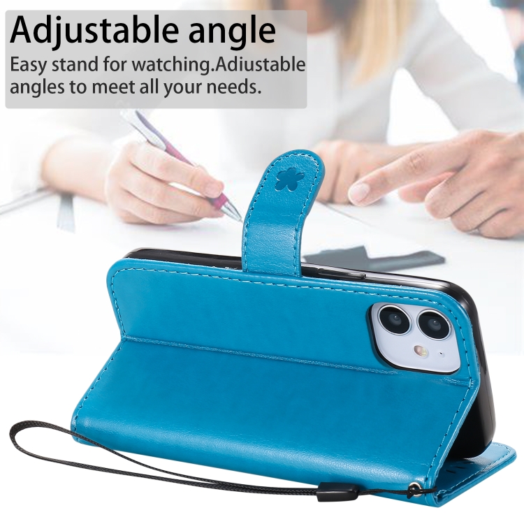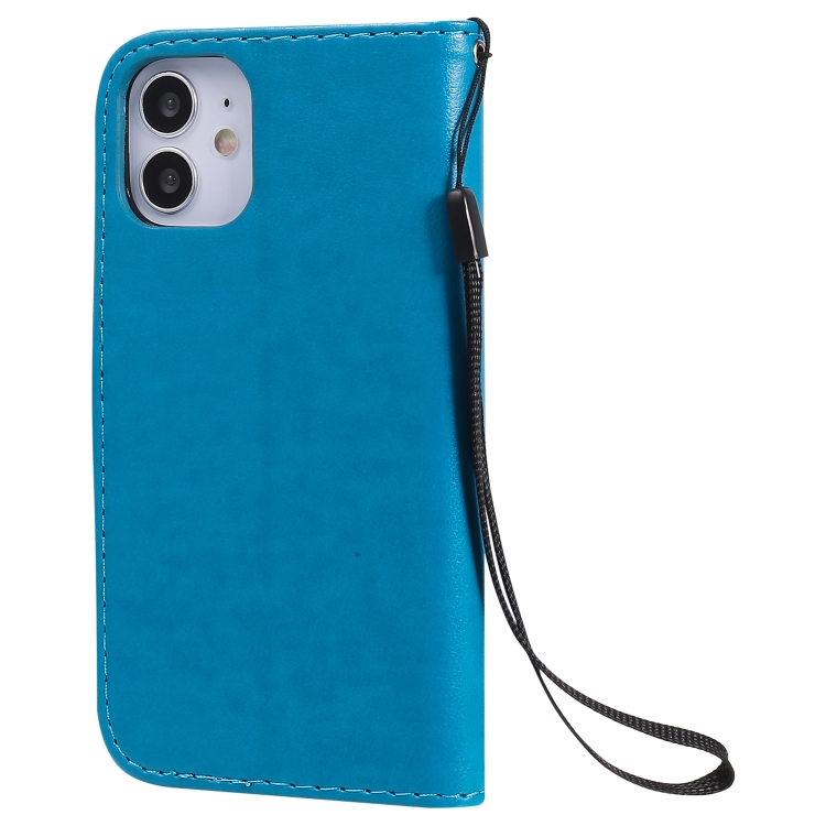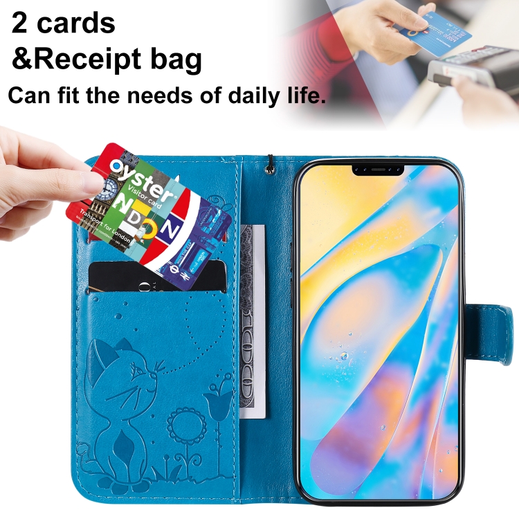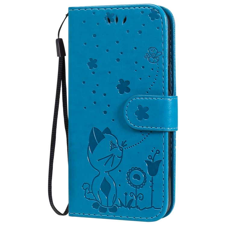 Funda de Cuero para iPhone 12 Mini Cat Bee Patrón en Relieve con Tapa Horizontal a Prueba de Golpes Soporte y Ranuras para Tarjetas (Azul)