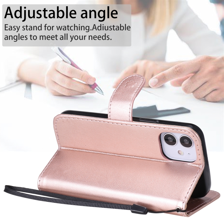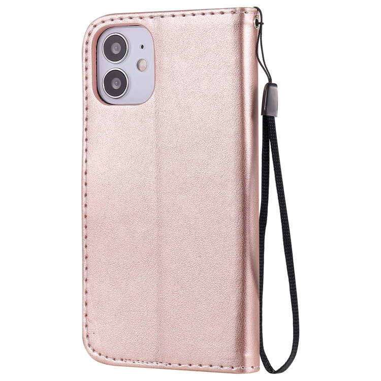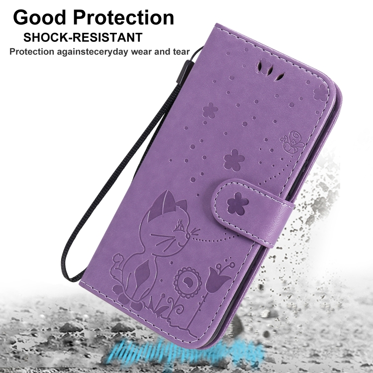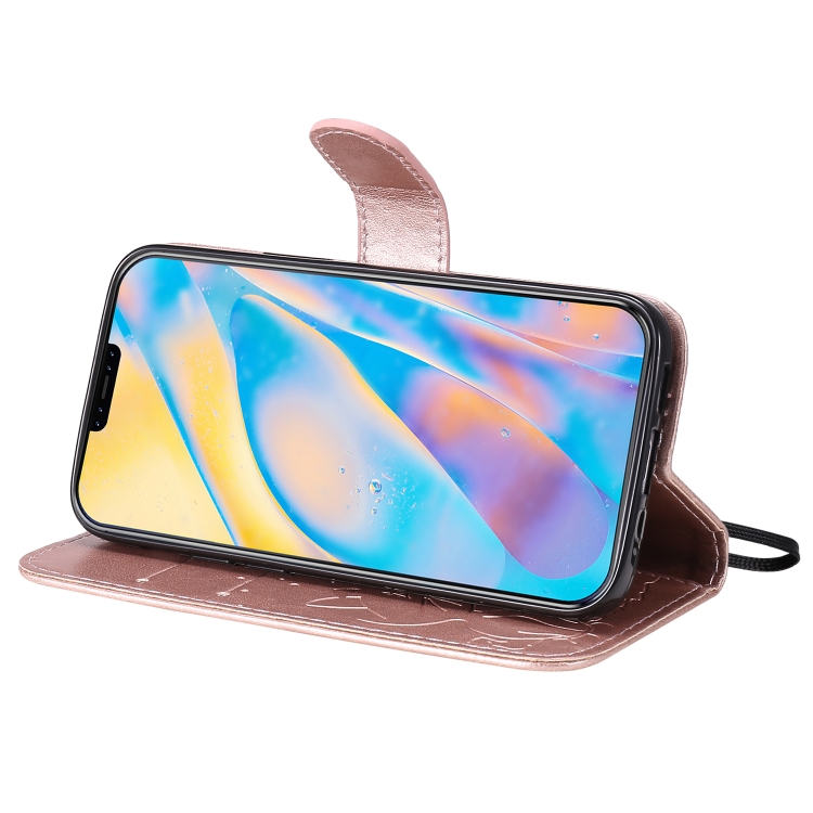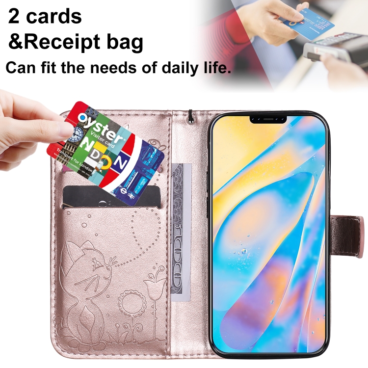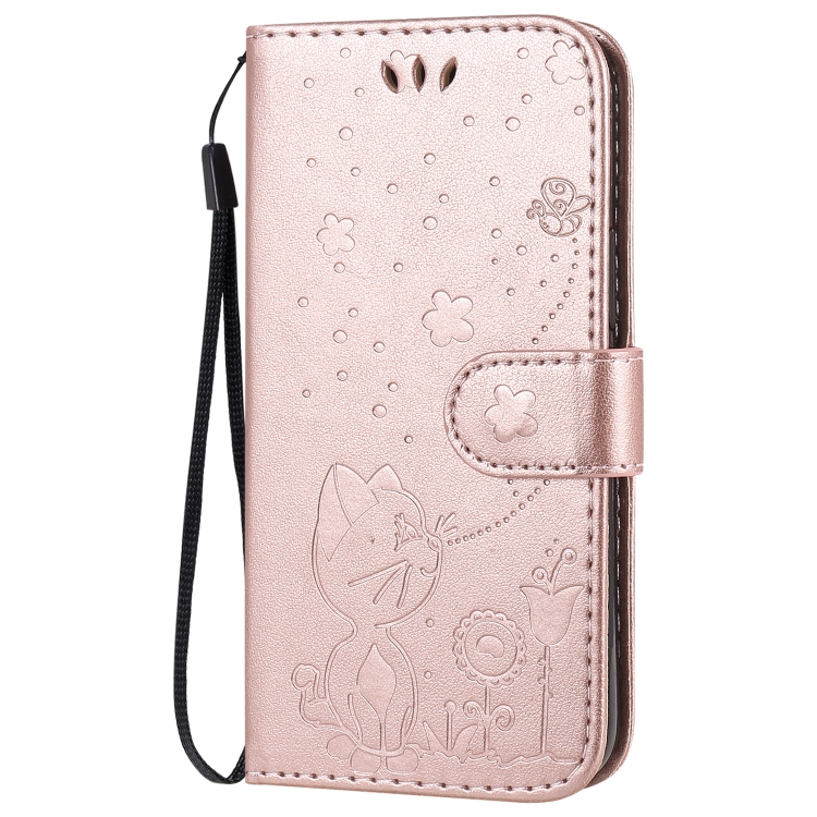 Funda de Cuero iPhone 12 Mini Cat Bee Patrón En Relieve Tapa Horizontal Soporte Ranuras Billetera (Oro Rosa)