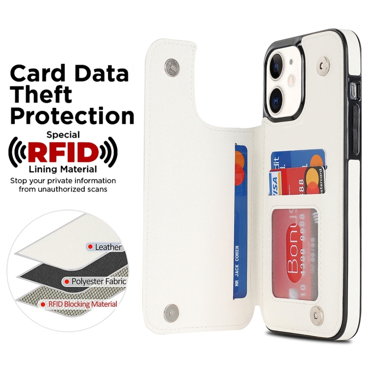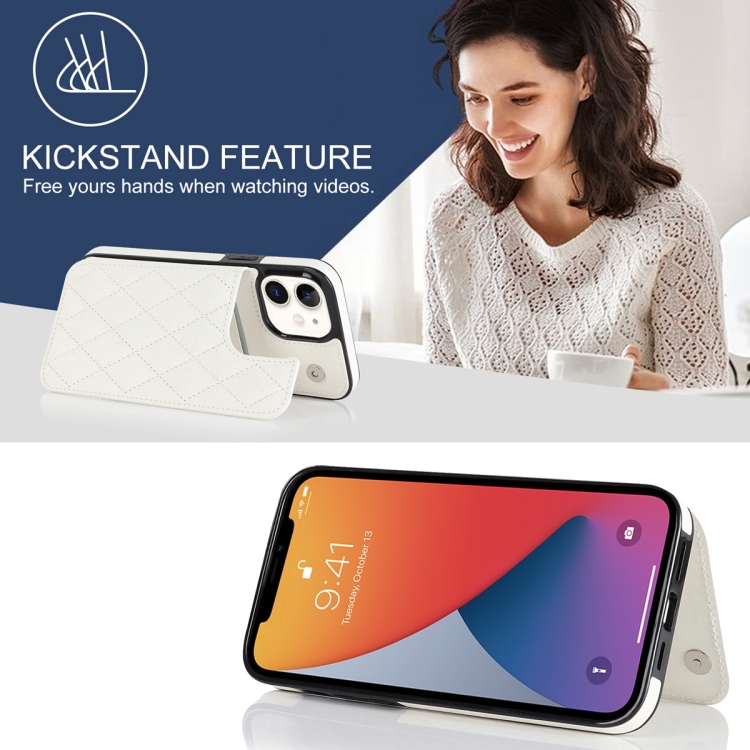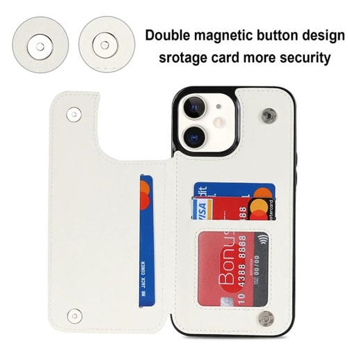 Funda de Teléfono iPhone 12 Mini Doble Hebilla Cuero Pu Rombal (Blanco)