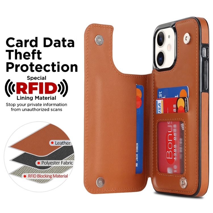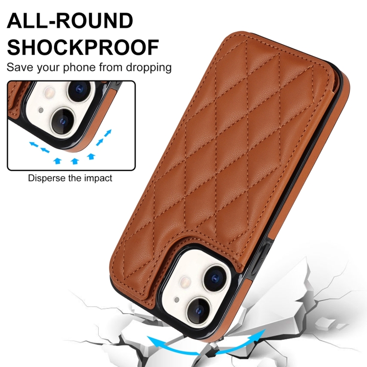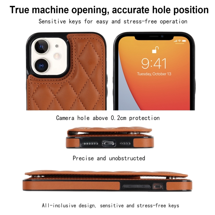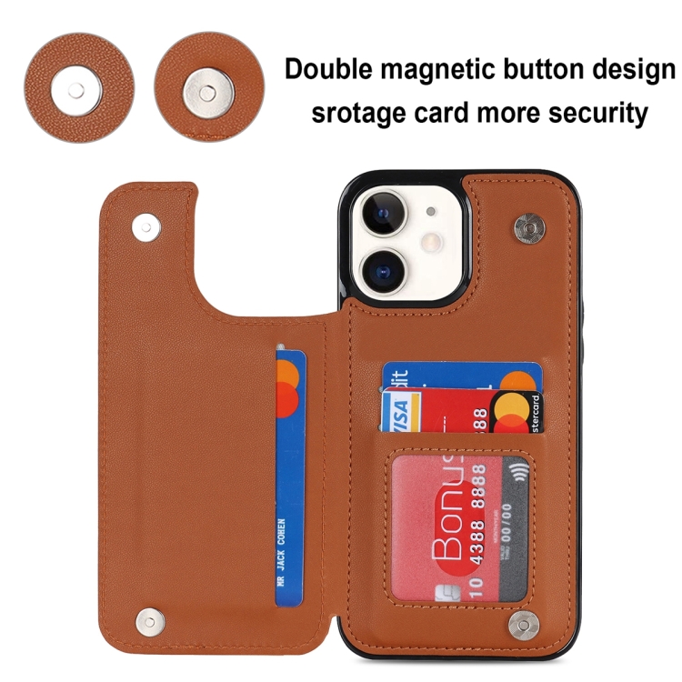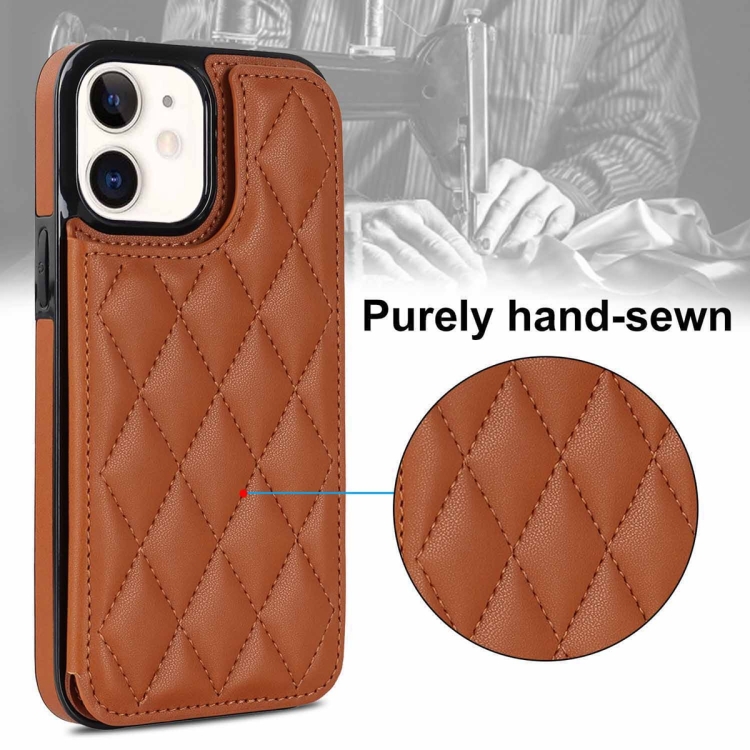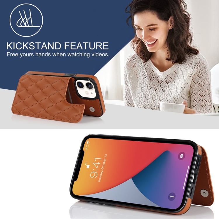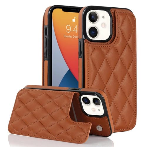 Funda de Teléfono iPhone 12 Mini Doble Hebilla Cuero PU Rombal (Marrón)