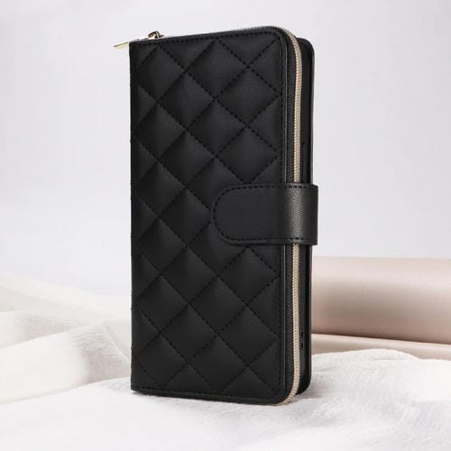 Estuche para Teléfono iPhone 12 Mini Cuero Hebilla Torre Cremallera Rómbica Cruzada con Cordón (Negro)