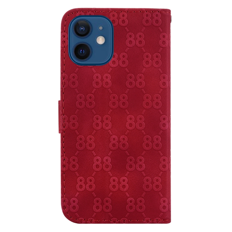 Estuche para Teléfono iPhone 12 Mini Cuero en Relieve Doble Forma de 8 (Rojo)