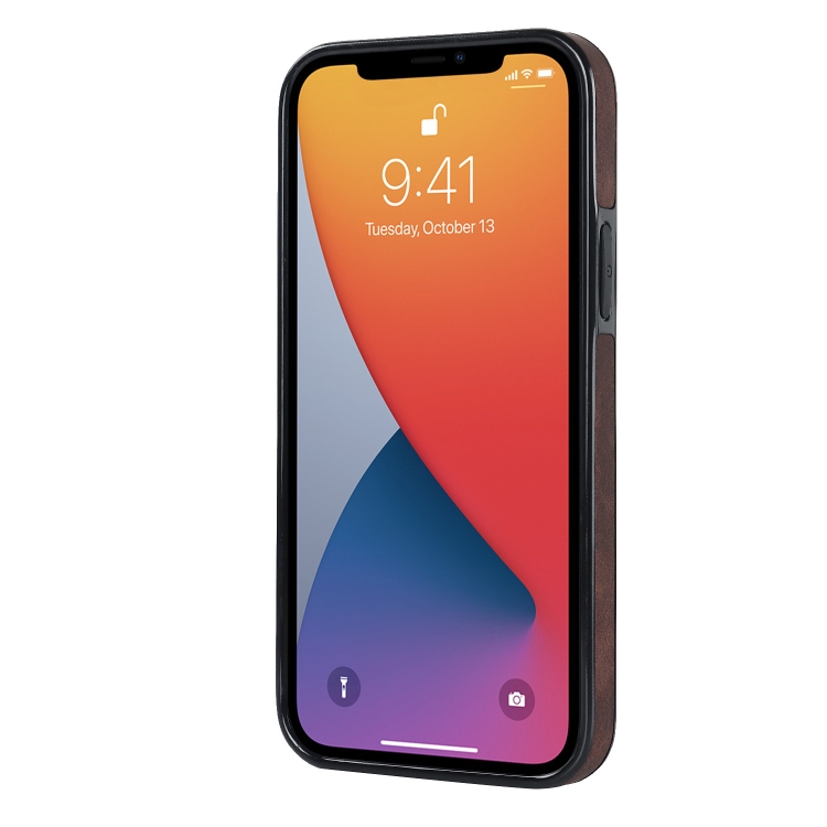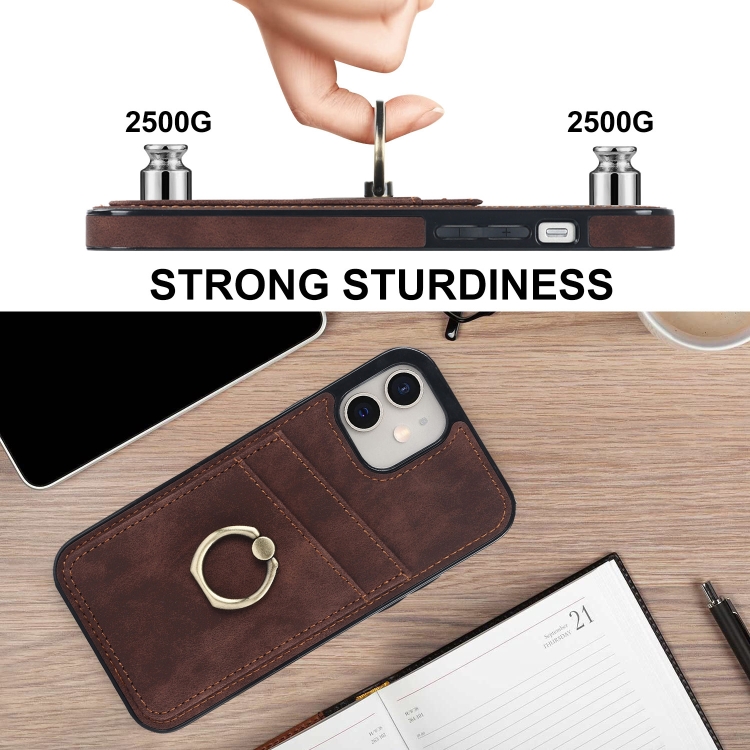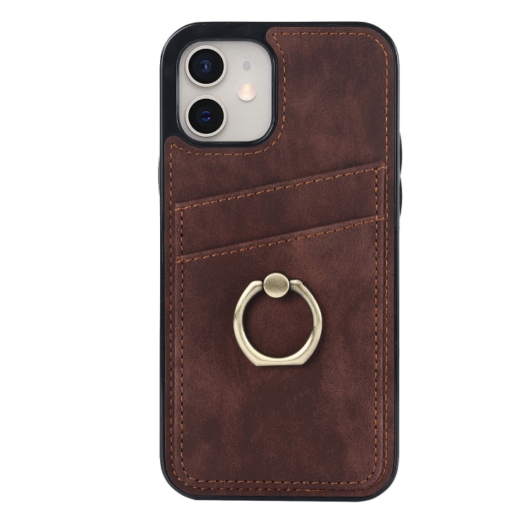 Funda para iPhone 12 Mini Cuero Parche Vintage Soporte para Anillo (Marrón)