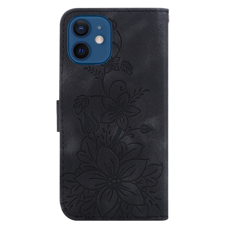 Funda de Cuero para iPhone 12 Mini con Relieve Lily (Negro)