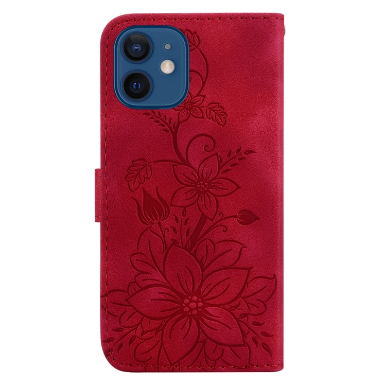 Funda de Cuero para iPhone 12 Mini con Relieve Lily (Rojo)