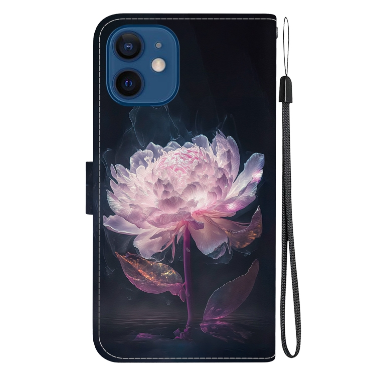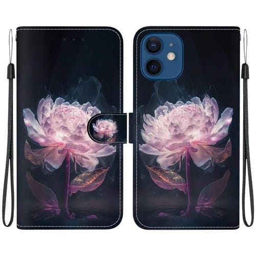 Funda de cuero para iPhone 12 Mini con dibujo coloreado y textura de cristal (Peonía Púrpura)