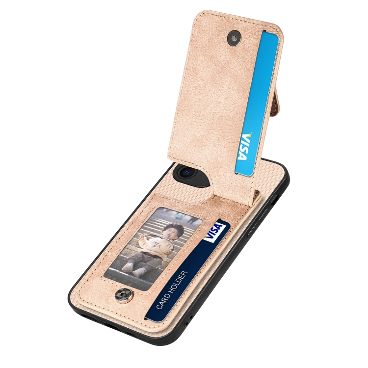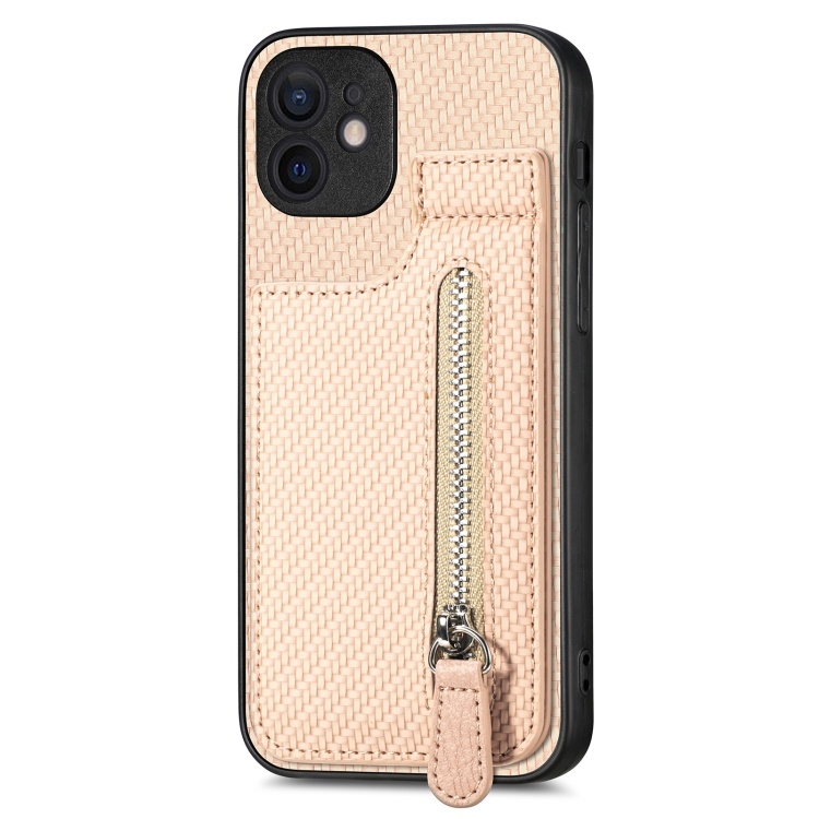 Funda de teléfono para iPhone 12 Mini con cremallera vertical de fibra de carbono (Caqui)