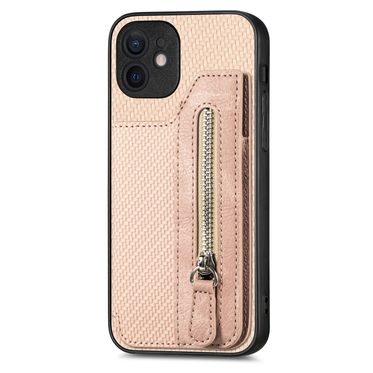 Funda de teléfono para iPhone 12 Mini con cremallera y tapa horizontal de fibra de carbono (Caqui)