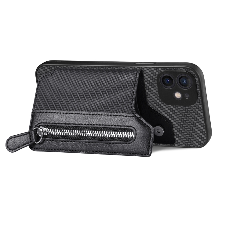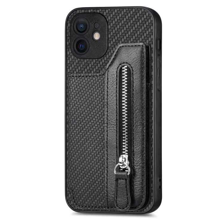 Funda de teléfono para iPhone 12 Mini con cremallera y tapa horizontal de fibra de carbono (Negro)