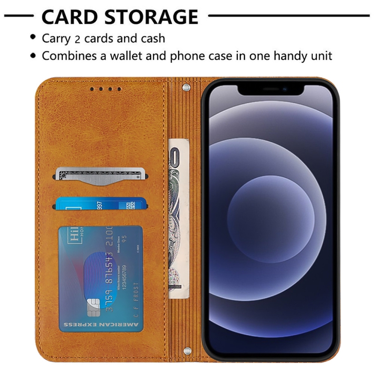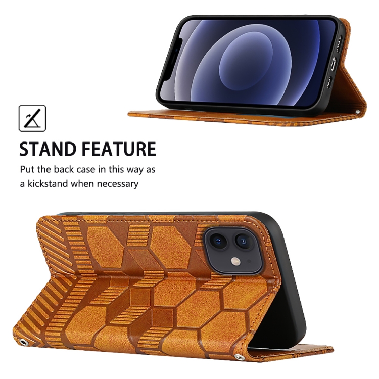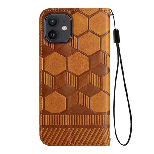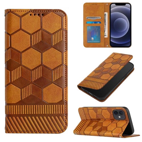 Funda de teléfono iPhone 12 Mini con tapa de cuero magnético textura de fútbol (Caqui)