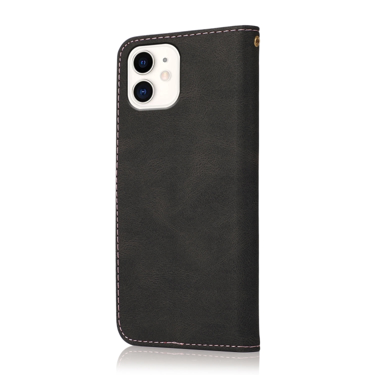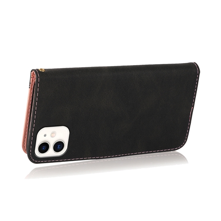 Funda de Teléfono Cuero Apple iPhone 12 Mini con Costuras Dos Colores (Oro Rosa Negro)
