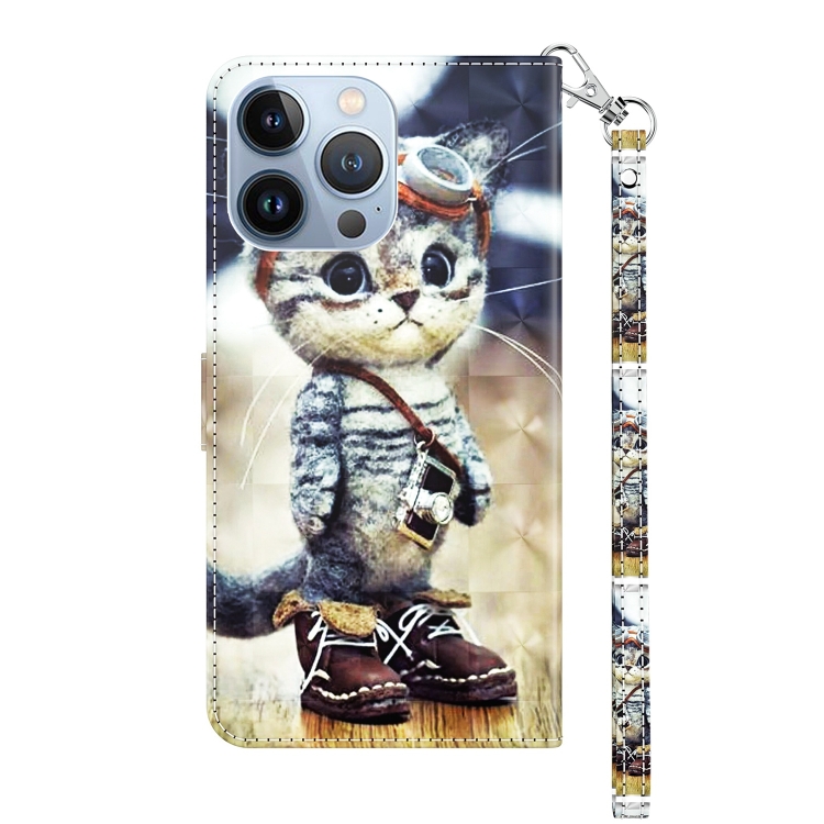 Funda de Teléfono iPhone 12 Mini Cuero Pintado 3D Gato Travieso