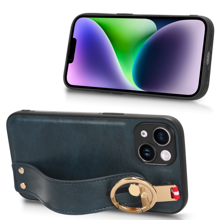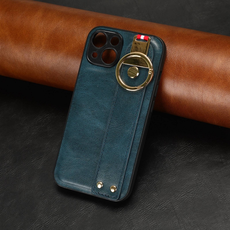 Funda Trasera Muñequera para iPhone 12 Mini Cuero (Azul)