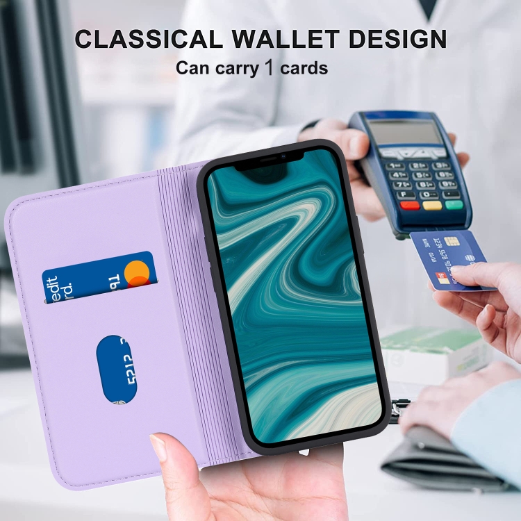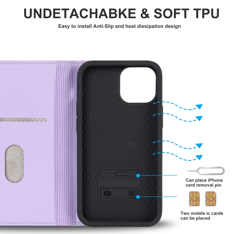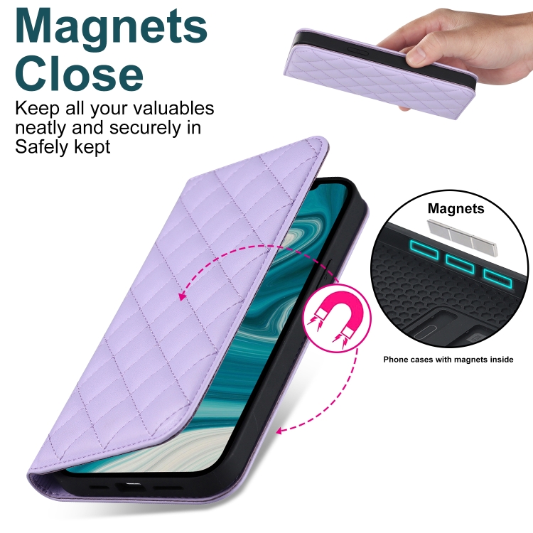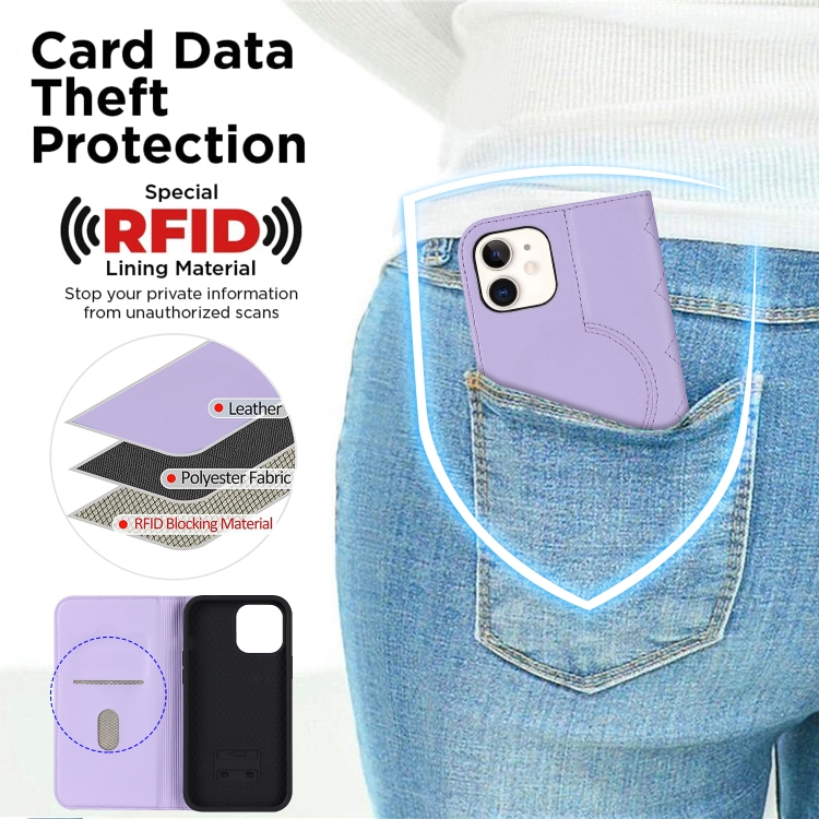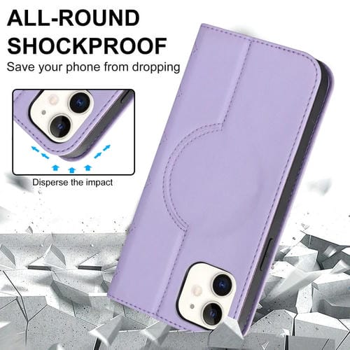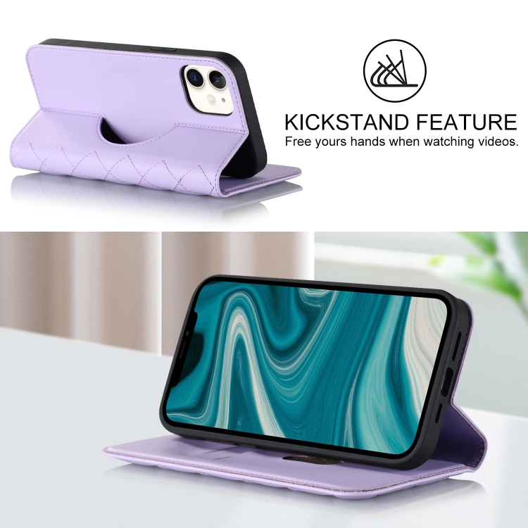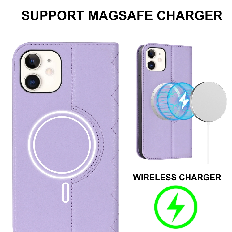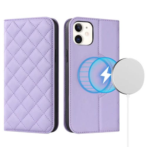 Funda para iPhone 12 Mini Rhombic Magsafe Rfid Antirrobo de Cuero (Púrpura)