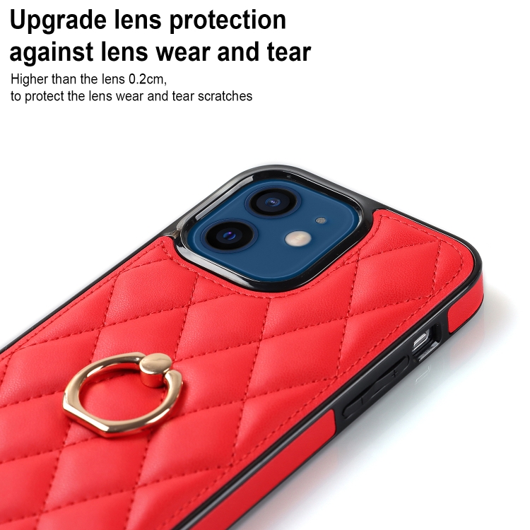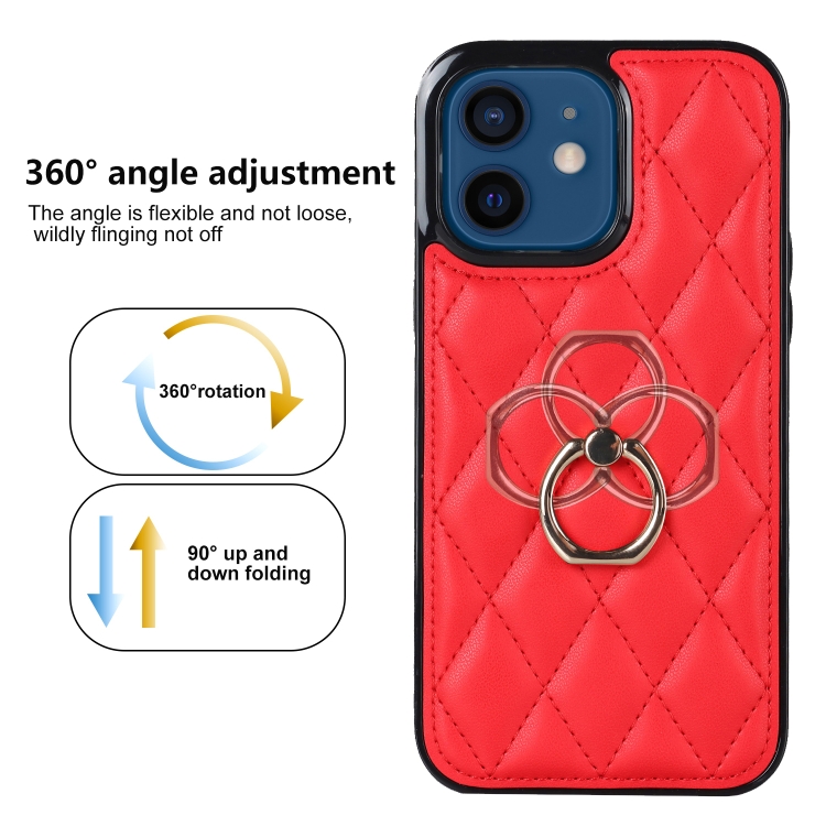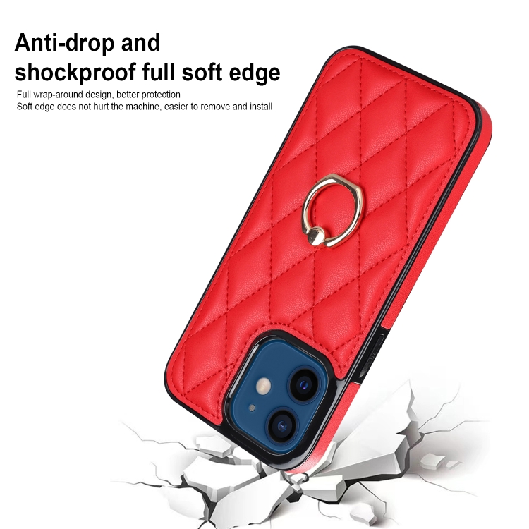 Funda para Teléfono iPhone 12 Mini Rhombic Pu Cuero con Soporte para Anillo (Rojo)