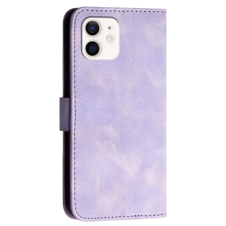 Funda para iPhone 12 Mini Yx0080 Cuero con Tapa y Cordón Diseño Mariposa (Morado Claro)