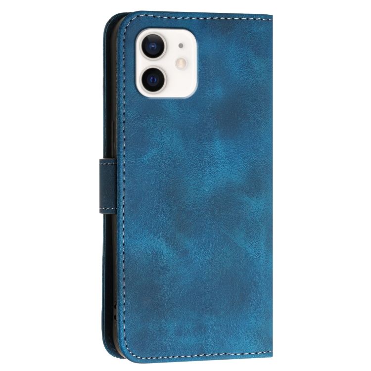 Funda de Cuero iPhone 12 Mini Yx0080 Tapa Patrón Mariposa Cuadrícula con Cordón (Azul Oscuro)