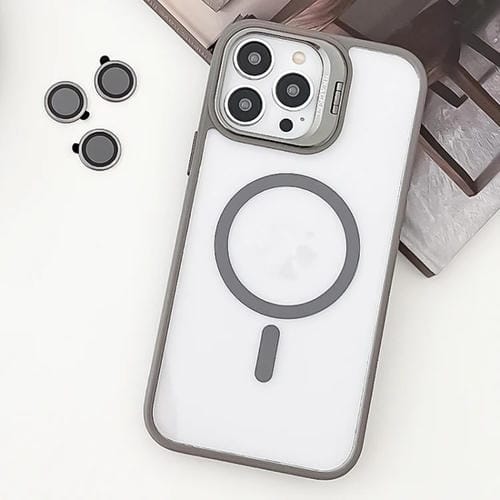 Estuche para Teléfono iPhone 12 Pro TPU Híbrido Acrílico Soporte Magsafe Película para Lentes (Gris)