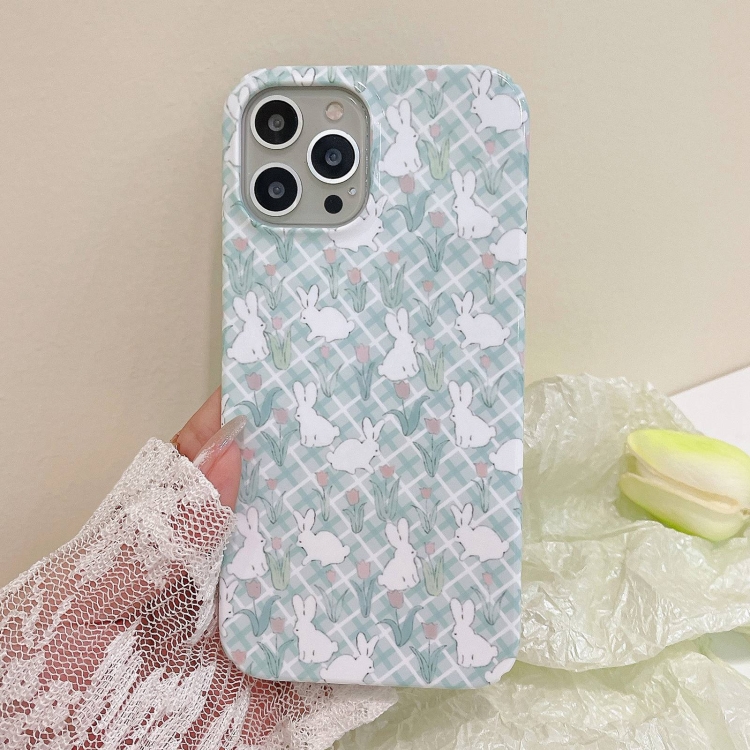 Estuche para Teléfono iPhone 12 Pro PC con Patrón Pintado Tulip Bunny