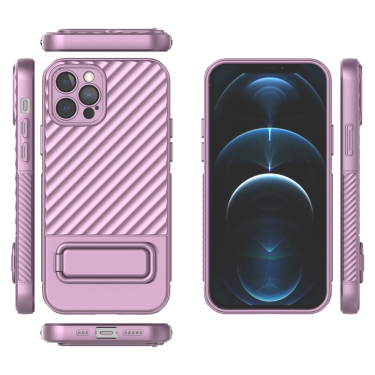 Funda de teléfono TPU para iPhone 12 Pro con textura ondulada y Película de Lente (Púrpura)