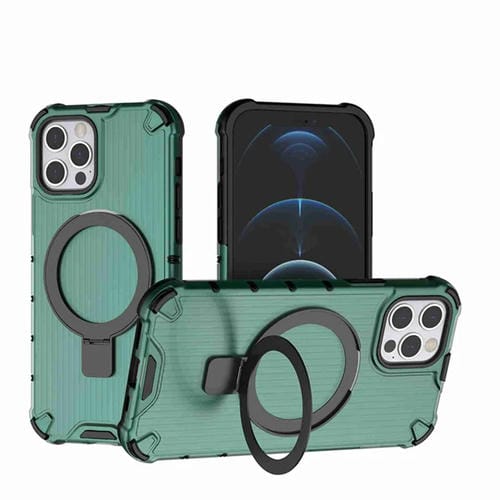 Funda para Teléfono iPhone 12 Pro con Soporte Rejilla a Prueba de Golpes (Verde)