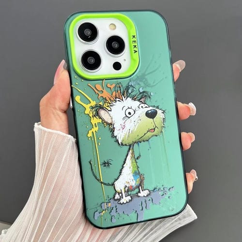 For iPhone 12 Pro Phone Case IMD Animal Graffiti TPU+PC Double-sided (White Melt Green Dog)