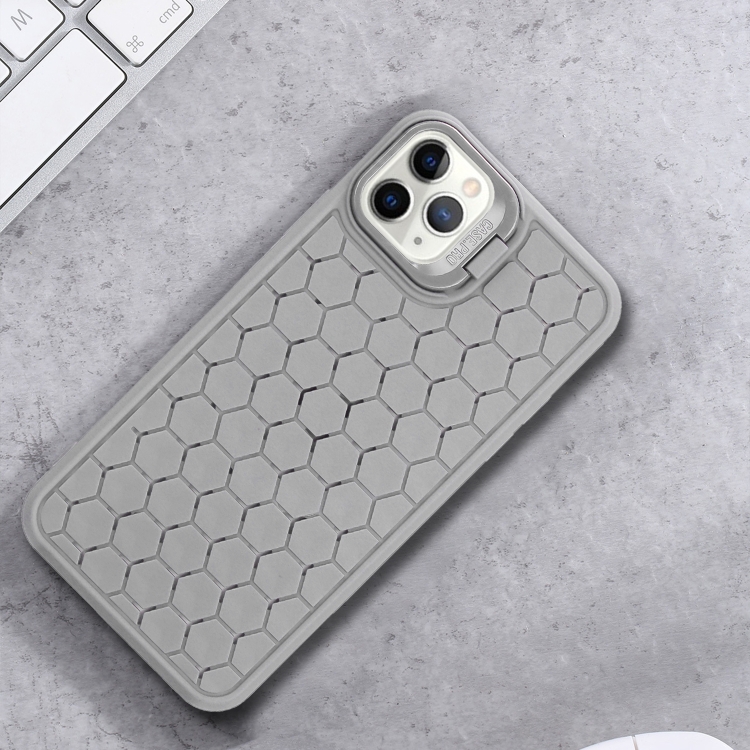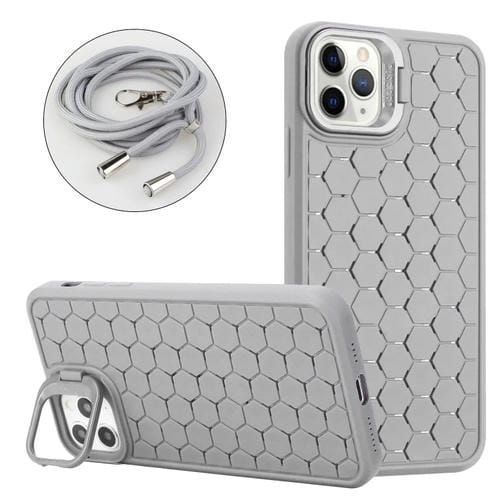 Funda para Teléfono iPhone 12 Pro Honeycomb Radiating Holder TPU con Cordón (Gris)