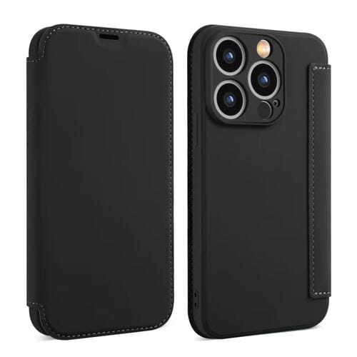 Funda para Teléfono iPhone 12 Pro Imitación Cuero Sensación Piel Líquida Ranuras para Tarjetas (Negro)